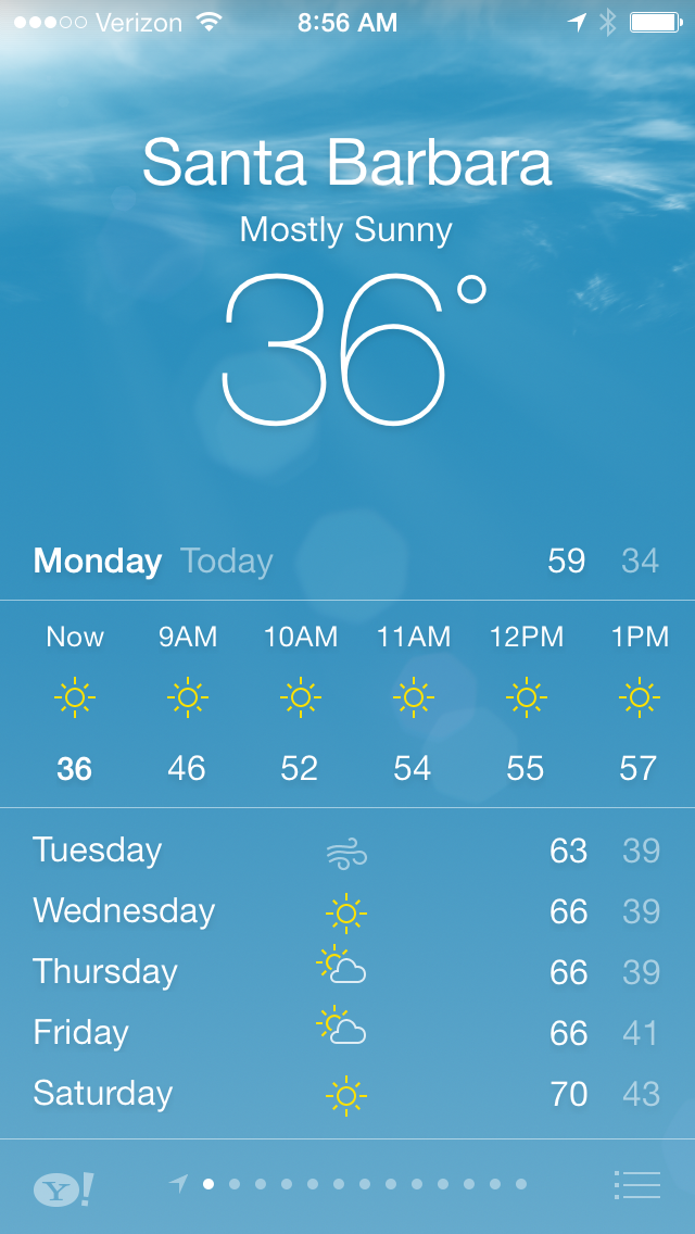 The temperature when I left my house for work this morning. This is a big deal here in sunny SB. I may or may not be wearing a winter coat at my desk right now.